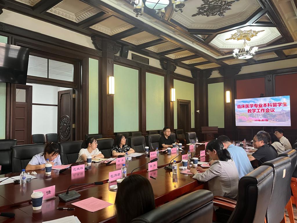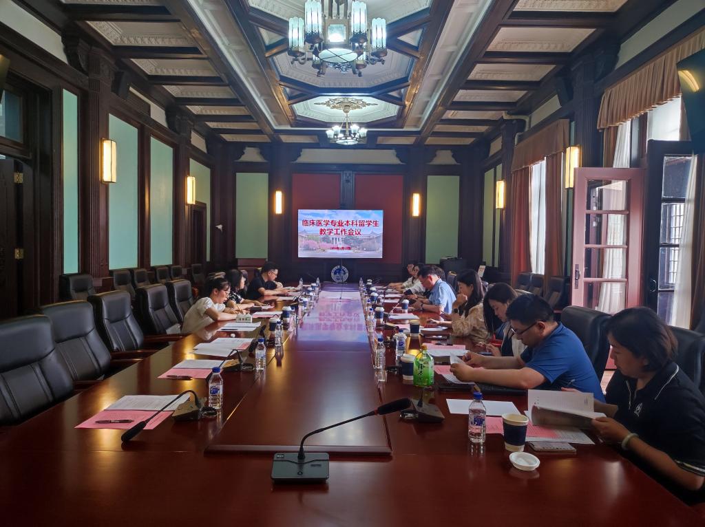 To further improve the quality of medical education for international students, actively advance international student teaching, optimize the quality assurance system for international education in China, and promote the healthy and stable development of international student education, the College of Basic Medical Sciences organized a Teaching Work Meeting for International Undergraduate Students Majoring in Clinical Medicine on the afternoon of June 13. Xu Qinghui, Deputy Director of the Medical Education Office of Norman Bethune Health Center of Jilin University; relevant leaders, experts, and teaching secretaries from the First Norman Bethune Hospital, Second Norman Bethune Hospital, and Third Norman Bethune Hospital of Jilin University; Wang Xiaorong, Secretary of the Party Committee of the College of Basic Medical Sciences; and all staff of the International Student Office of the College of Basic Medical Sciences. The meeting was presided over by He Kan, Assistant Dean of the College of Basic Medical Sciences.