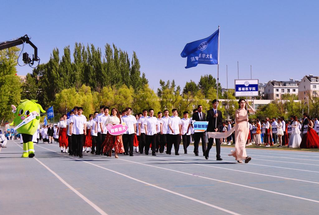 On May 17, with the spring breeze brushing against the face and the sun shining over the green field, the opening ceremony of the Games kicked off. Accompanied by passionate melodies, the delegation of the College of Basic Medical Sciences marched into the venue with high spirits. The members of the phalanx consisted of undergraduate students, postgraduate students and international students of the college. The mascots “Xiao Yi” and “Xiao Zhi”, making their debut, were co-designed by the college’s teachers and students, demonstrating the rich imagination of the faculty and students as well as their expectations and visions for the future development of medicine. As a pioneering team in China’s medical artificial intelligence field—led by the cultivation of top-tier talents in the Bethune Class of Biomedical Science and integrated with MBBS international students—the delegation carries the solid disciplinary foundation of basic medicine, gathers the strength of interdisciplinary integration and innovation, forges ahead in the wave of “New Medical Sciences”, and continuously climbs new heights on the path of serving national strategic needs and safeguarding people’s life and health. This Games marked the first time that the college saw the joint participation of undergraduate students, postgraduate students, international students, and faculty and staff. Students with different academic backgrounds and nationalities learned from each other, encouraged one another, shared the joy of sports competitions, and jointly pursued the spirit of excellence in sports, which not only deepened the communication and understanding between teachers and students, but also helped build a positive campus atmosphere.