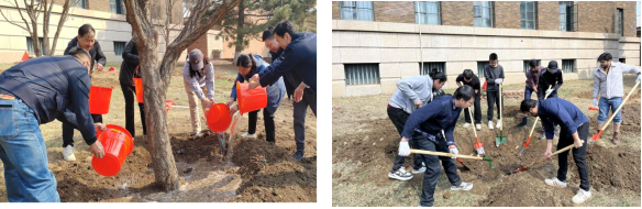 At 9 a.m., with the gentle spring breeze blowing, college leaders, faculty and staff, alumni and students gathered at the green area on the south side of the college. According to the pre-planned planting area, everyone picked up tools and enthusiastically devoted themselves to the tree-planting activity. Undergraduates were full of vitality, postgraduates operated rigorously, and international students, with curiosity and respect, experienced the cultural connotation of Qingming Festival, a traditional Chinese festival, as well as the Chinese-style humanistic feelings and ecological protection awareness through personal participation. During the process, all participants collaborated with each other and jointly planted a “Xinglin”. This tree-planting activity further strengthened the close bond between alumni and the alma mater, created a positive interactive atmosphere, set a good example for students to care about the alma mater and give back to society, and provided a vivid practical platform for cultivating high-quality talents with a sense of social responsibility.