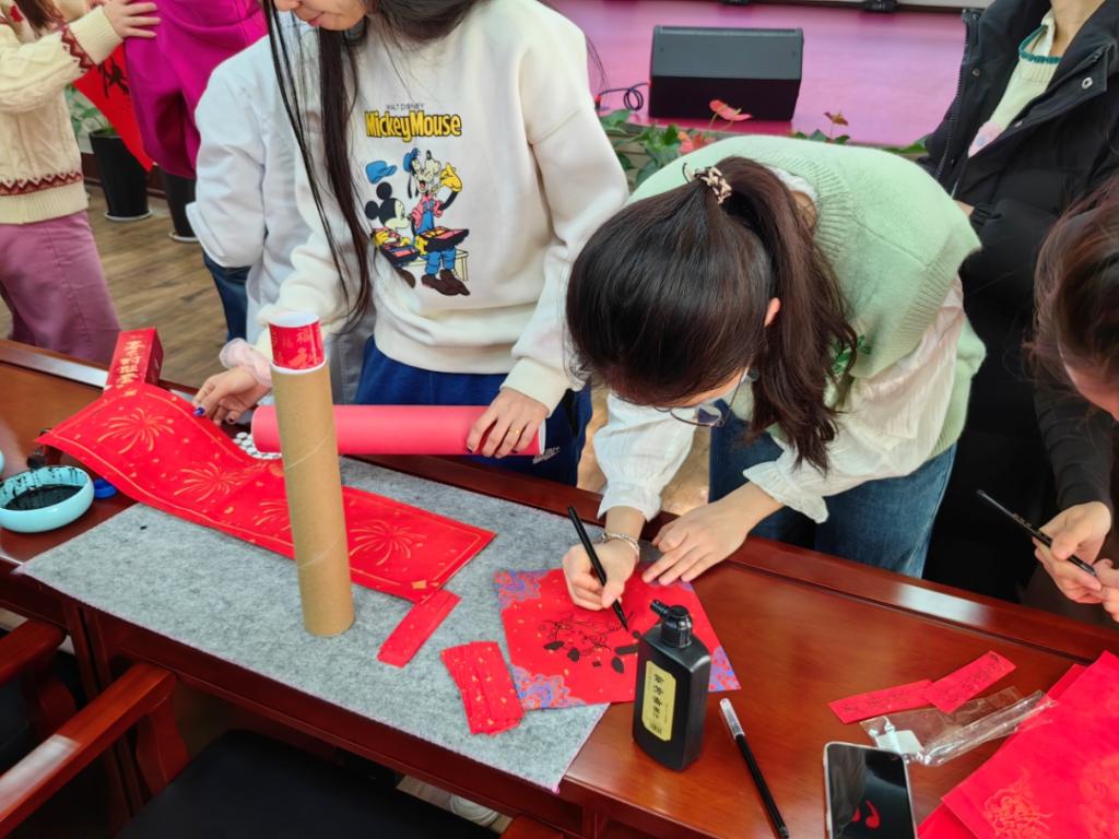 Writing spring couplets and sending blessings delivers beautiful wishes and warms the hearts of every student on campus. The New Year brings a new atmosphere; we feel happiness in the flavor of the New Year and warmth in the sense of ritual. Amid laughter and joy, we look forward to a more prosperous and bright future, and gather confidence to forge ahead in this season of renewal.