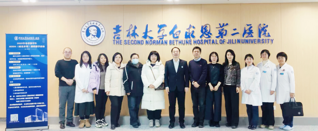To fully support the high-quality delivery of the Medical History Taking course for international MBBS students in the new semester, enhance teachers’ teaching proficiency, and improve in-class teaching effectiveness, the Medical History Taking Teaching and Research Section held the 2025 Spring Collective Lesson Preparation Meeting and New Teacher Trial Teaching Session in the Smart Center Classroom of Yatai hospital district on February 25. Vice President Wang Min of the Second Norman Bethune Hospital of Jilin University, Vice Dean He Kan of the College of Basic Medical Sciences of Jilin University , Director Liu Xin of the International Student Office of College of Basic Medical Sciences of Jilin University, Director Bao Hongyan and Deputy Director Huang Sa of the Teaching Department of the Second Norman Bethune Hospital of Jilin University, Director Wang Ke of the Department of Respiratory and Critical Care Medicine, and Director Cai Hanqing of the Endocrinology Department of Ziqiang Campus attended the event. More than 40 relevant teachers from the Medical History Taking Teaching and Research Sections of the Second, First, and Third Norman Bethune Hospitals of Jilin University attended the meeting. Through a combination of online and offline methods. The meeting was presided over by Chen Peng, Director of the Clinical Professional Foreign Language Teaching and Research Section and Chief Person in Charge of the Medical History Taking course of the Medical Department.