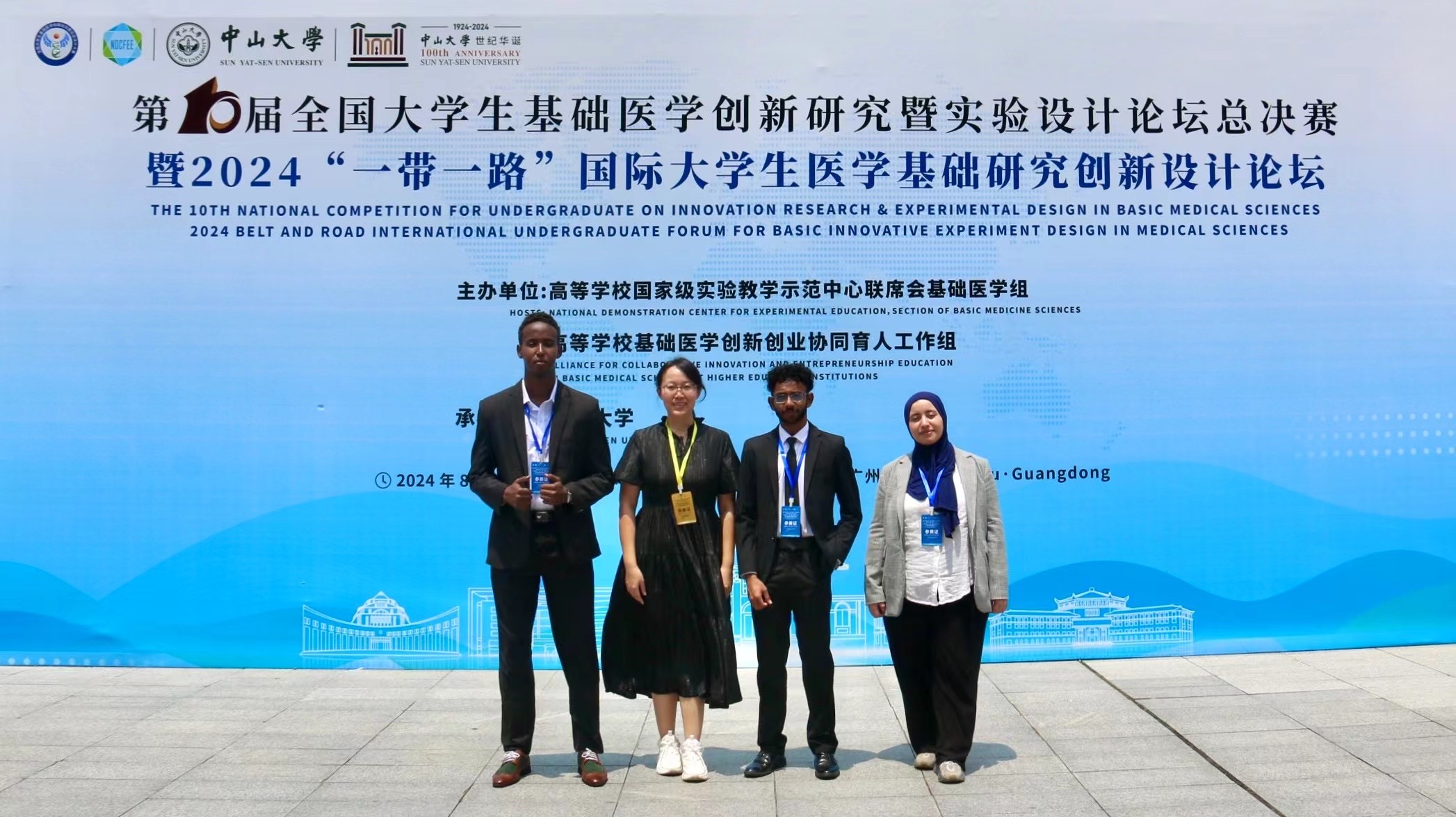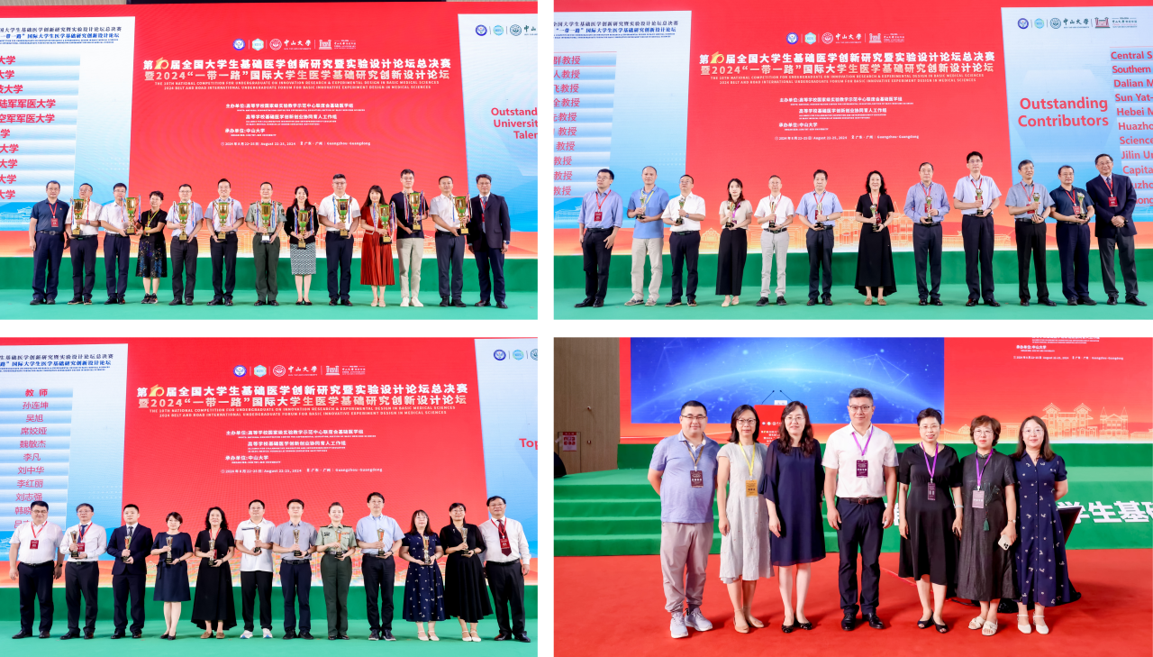The Finals of the 10th National Competition For Undergraduate On Innovation Research&Experimental Design In Basic Medical Sciences 2024 “Belt and Road” International Undergraduate Forum For Basic Innovative Experiment Design In Medical Sciences, sponsored by the Basic Medicine Group of the Joint Council of National Experimental Teaching Demonstration Centers in Institutions of Higher Education and the Basic Medical Innovation and Entrepreneurship Collaborative Education Working Group, and hosted by Zhongshan University, were successfully held in Guangzhou from August 22 to 25. After preliminary selection at Jilin University and regional semi-finals, 12 teams from our university participated in the national finals. Following fierce competition, they won a total of 5 Gold Awards, 3 Silver Awards, 4 Bronze Awards, 2 Best Teamwork Awards, 1 Best Demeanor Award, and 1 Excellent Organization Award (University Level), achieving the best results in the university's history and earning unanimous recognition from the organizing committee and judges.